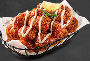 크런치한 바삭함과 촉촉 부드러운 순살이 더블! 깊고 지한 바베큐소스 양념 위에 치즈크림소스가 더블!