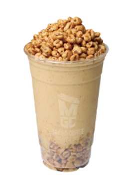 바삭하고 달콤한 퐁을 부드러운 바나나, 우유, 얼음과 함께 블렌딩하여 시원하게 즐기는 것이 특징이다.