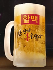 가장 맛잇는 온도 (저온숙성 생맥주) 생맥주를 영하의 저온으로 48시간 숙성하고, 냉동고 보관하여 얼린 맥주잔 맥주잔 표면의 마찰에 의해 순간 얼게 만듭니다. 그것은 더위를 잊을만큰 시원한 역전 할머니 맥주!!