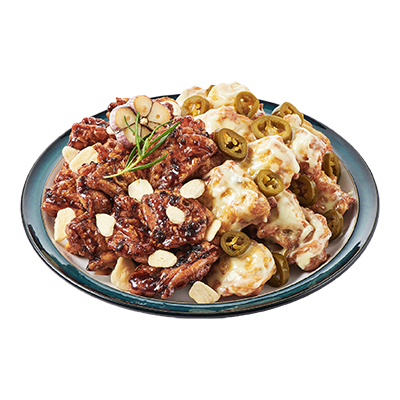 100% 통다리살로 만든 순살! 블랙알리오와 고추마요 치킨 두가지 맛의 치킨을 촉촉한 순살로 즐길 수 있는 메뉴.